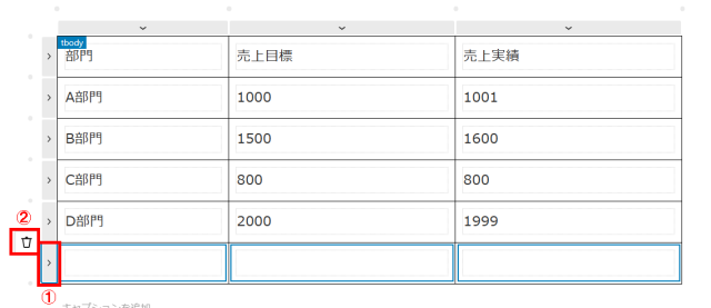 (4)①ブロックエディタ(Gutenberg)のテーブルが表示されています。