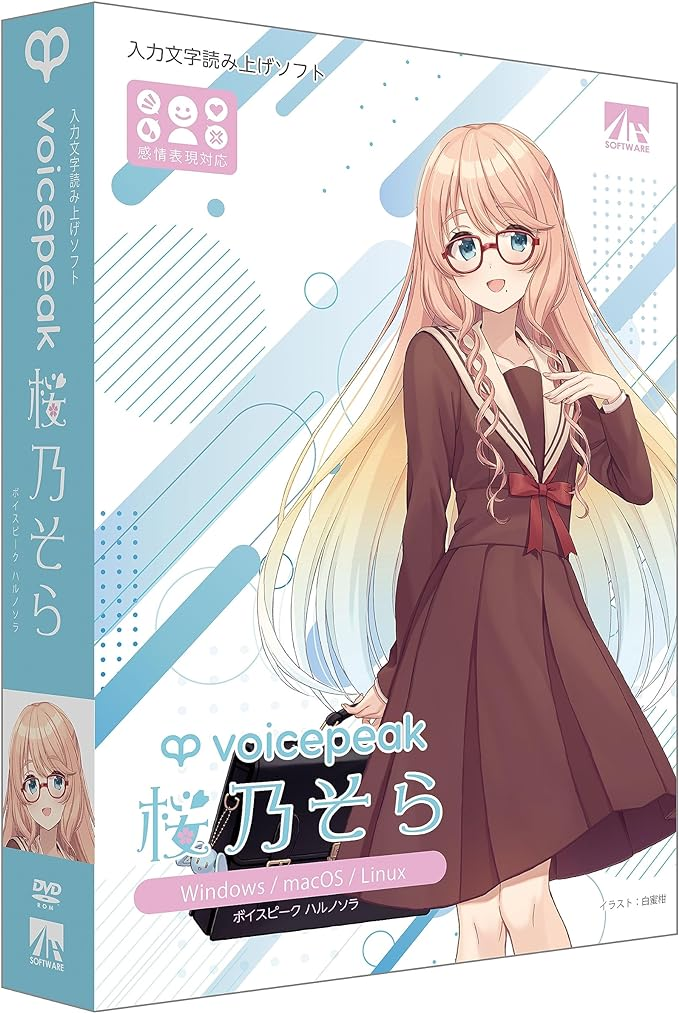 『VOICEPEAK 桜乃そら』は、声優「井上喜久子」の声を元に制作した、やさしく柔らかな声が特徴の入力文字読み上げソフトです。