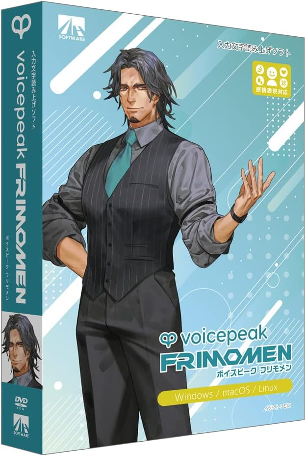 『VOICEPEAK フリモメン』は、声優・古賀明の声を元に製作した、深みのある低音ボイスが特徴の入力文字読み上げソフトです。